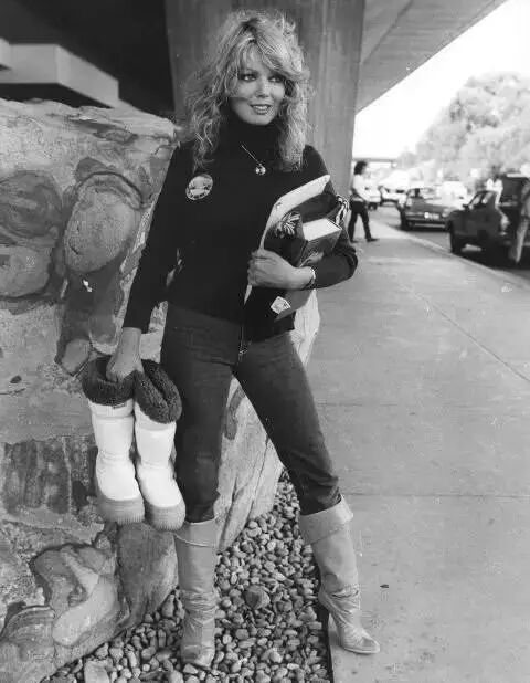 澳大利亞女演員Lynda Stoner挑了一條緊身到可以塞進靴子里的牛仔褲。