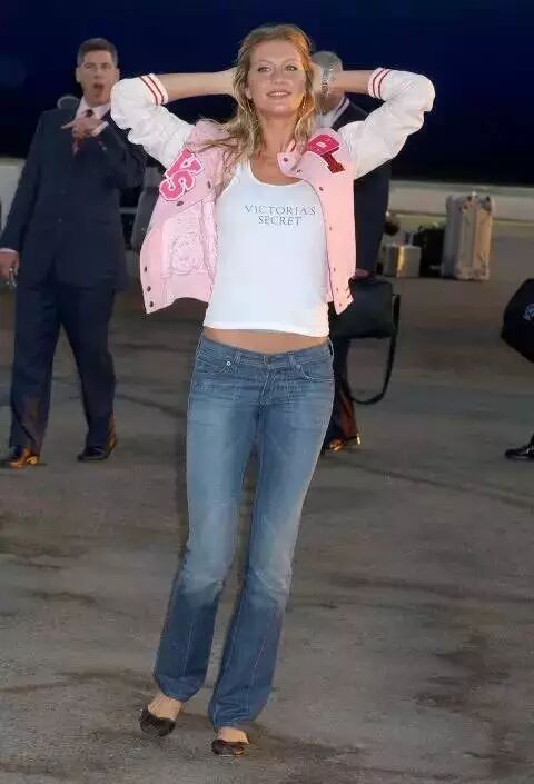 Gisele 挑了一條中間水洗褪色的牛仔褲,視覺上更凸顯腿部線條(雖然其實她不需要顯腿細了)。
