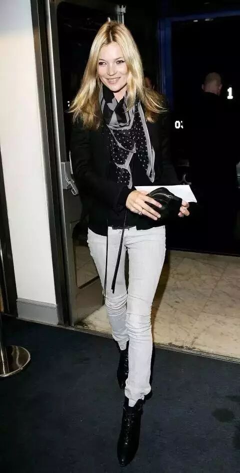 Kate Moss展示了新的牛仔潮流:灰色水洗牛仔褲。