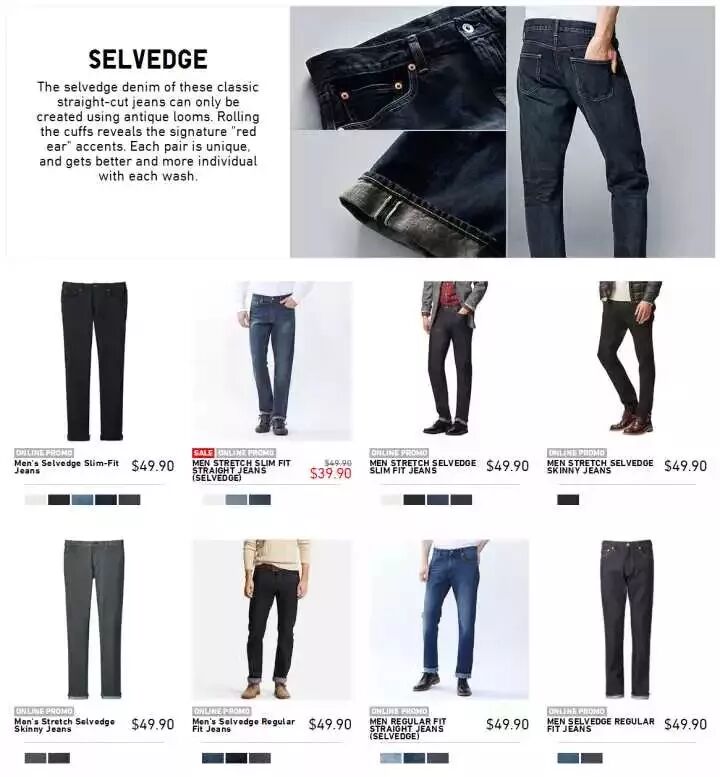 經(jīng)典進(jìn)化(彈力修身牛仔褲、經(jīng)典直筒牛仔褲):就是布料加彈了,然后腳口稍微修身了一些。