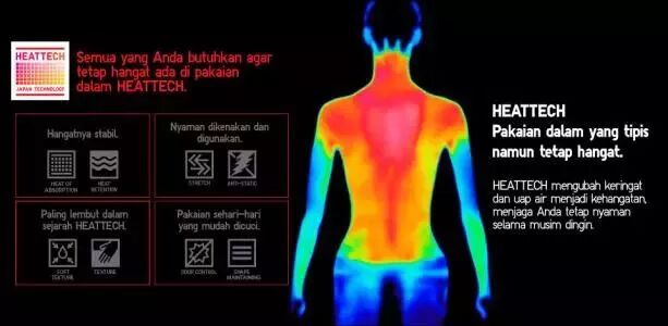 HEATTECH采用「纖維吸濕發(fā)熱」原理,纖維主要包括聚脂纖維(Polyester)、壓克力纖維(Acrylic Rayon)、黏液嫘縈(Rayon Staple Fiber)與聚氨基甲酸酯纖維(Polyurethane Fiber)。上述纖維透過UNIQLO與日本大型紡織公司TORAY合作開發(fā)的獨(dú)家特殊織法編成,以達(dá)發(fā)熱及熱能保暖之功效。