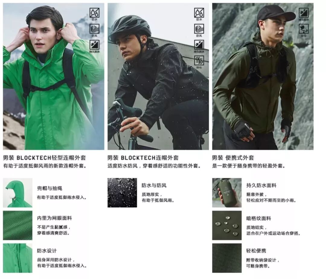 優(yōu)衣庫(kù)今年新推的BLOCKTECH面料便攜式外套,具有防水、防風(fēng)、輕便的特點(diǎn),而售價(jià)只需249軟妹幣,比起一些戶外品牌動(dòng)輒上千的價(jià)格,極具性價(jià)比。