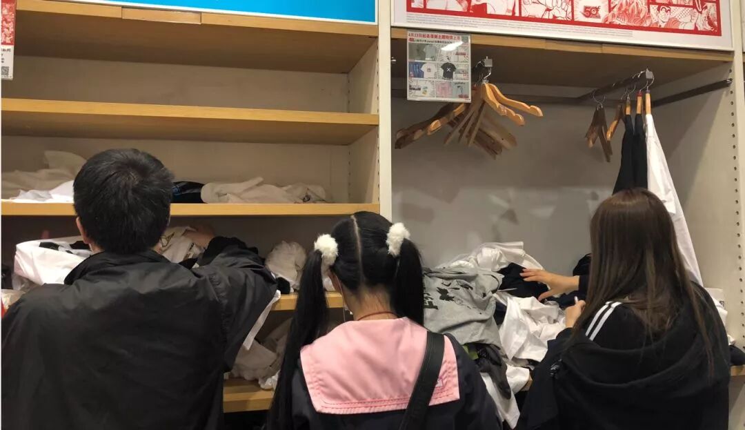 △優(yōu)衣庫(kù)旗艦店jump合作款的貨架上,只留下被粉絲暴風(fēng)搜刮后的一片狼藉。
